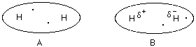 However, the electrons could be distributed unevenly for a moment in time. Since the electrons are on one side of the molecule there is a positive side and a negative side to H2 molecule B.