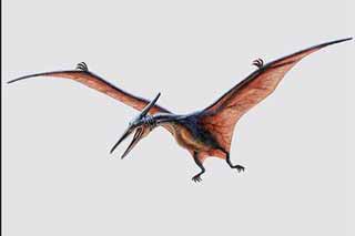 Good job answering that one. You hear a noise and look above you and see these huge flying reptiles in the sky. Some are small and some are huge, with long curved necks and skulls. What type of dinosaur is this? A. Pegasaurus B. Pterodactyl C. Velociraptor | ![]() |