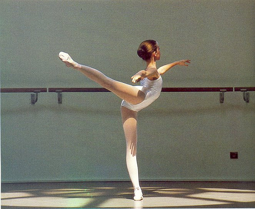 Which dancer is preforming an arabesque?