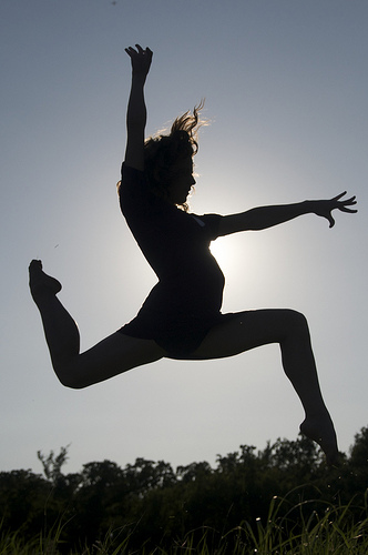 Which picture shows a dancer doing a split leap?
